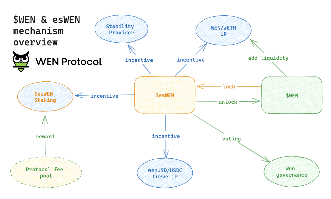 esWEN is escrowed $WEN, which has the same value as WEN. esWEN is not tradable nor transferrable but can be used for governance.&#x20;